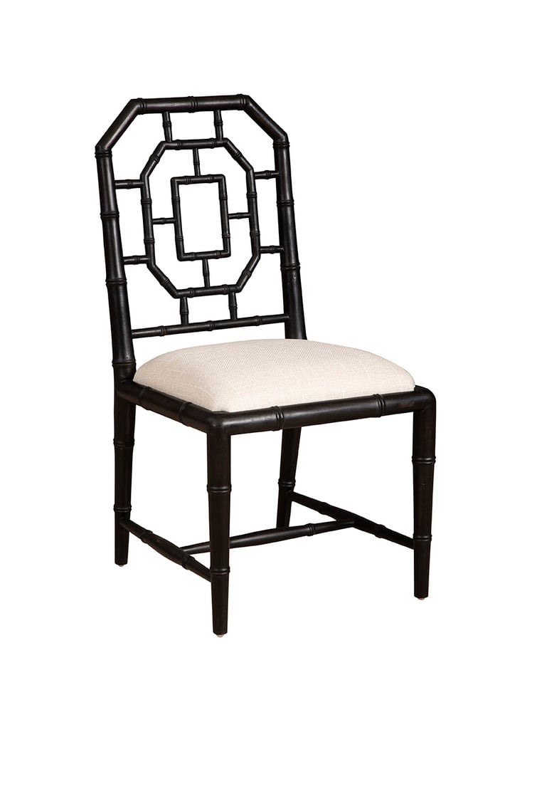 moreExperience the timeless elegance and expert craftsmanship of our Black Lahara Side Chair. Constructed from sustainably grown mahogany and finished in a sleek black hue, this chair showcases both durability and sophistication. The performance linen blend seat ensures lasting comfort and quality. With a refined geometric design, this chair introduces a captivating element to any space, evoking a sense of intrigue akin to a delightful plot twist in a cherished novel.